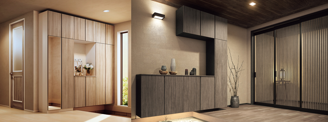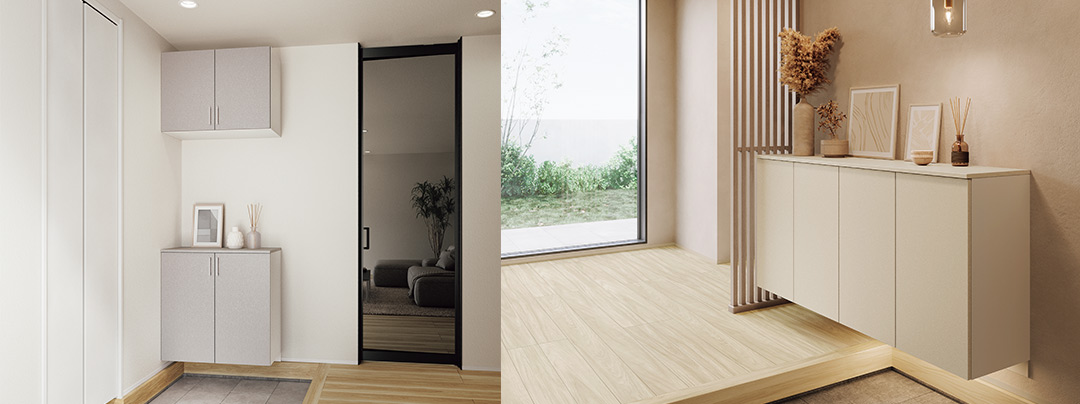 スペースの小さい玄関にもスッキリ納めることが可能な奥行の薄いボックスも対応しております。
