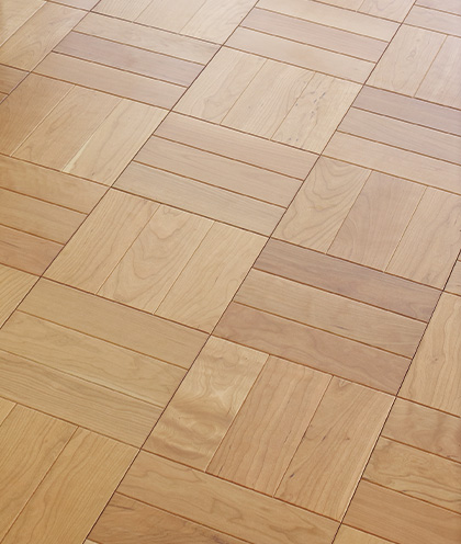 ピースを仕組むことでできた木目の方向と、2mm厚挽き板、R溝が上品な陰影を生み出し、クラシックな高級感を演出します。