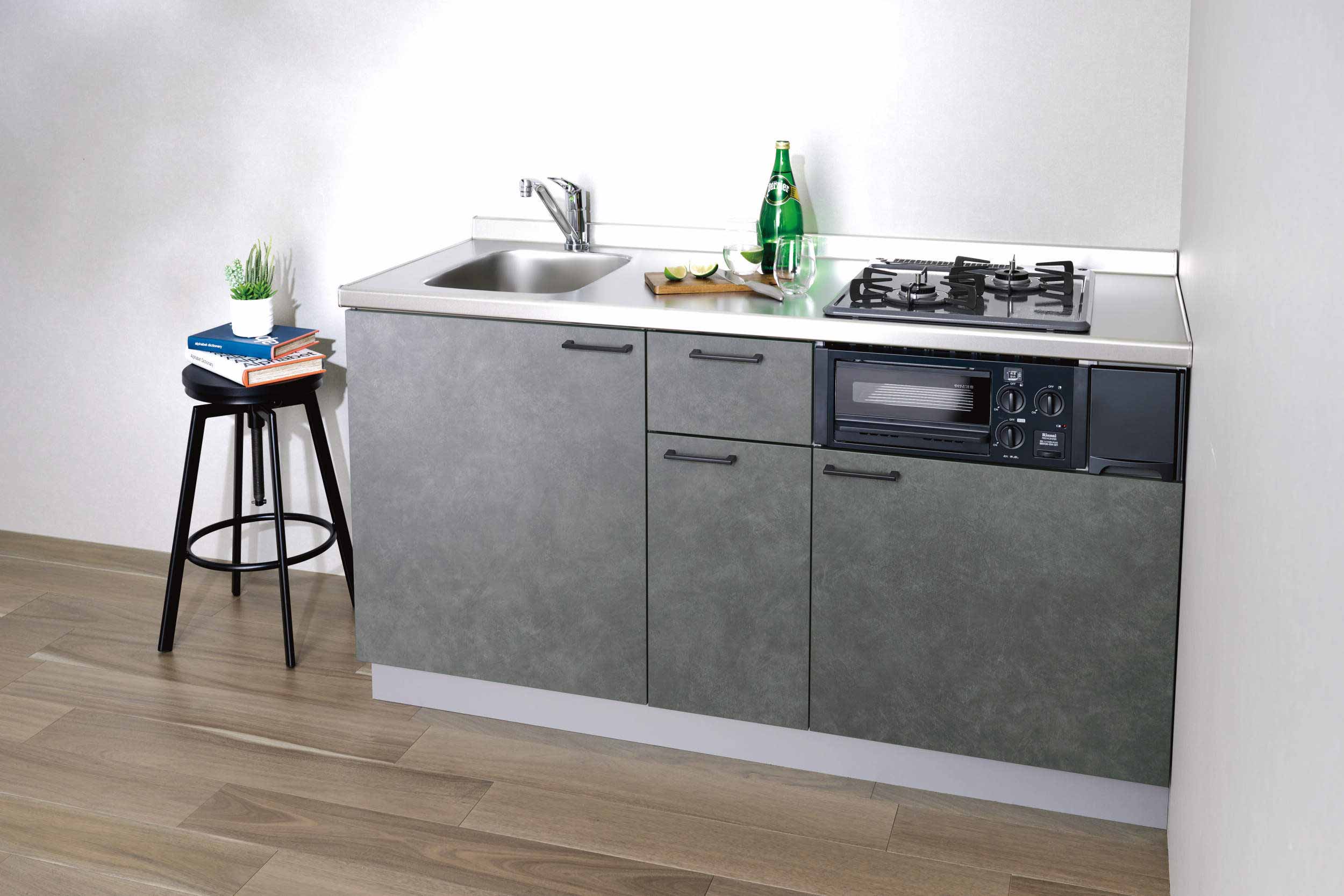 - コンパクトキッチンでありながらも、戸建てや分譲マンション向けキッチンにも劣らないデザイン性を備えており、