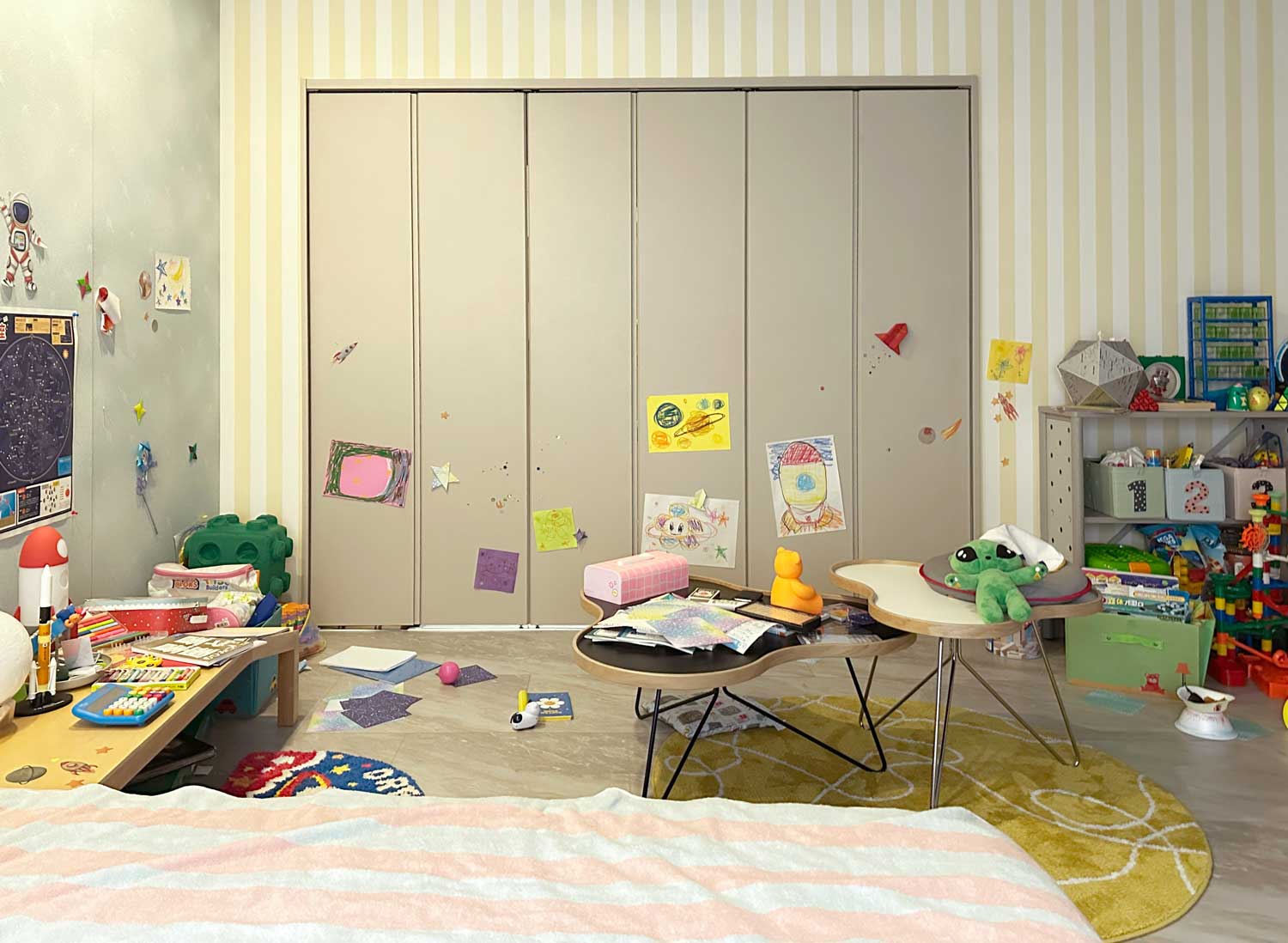 ベージュカラーは上品なインテリアはもちろん、カラフルな子供部屋とも相性バッチリ。