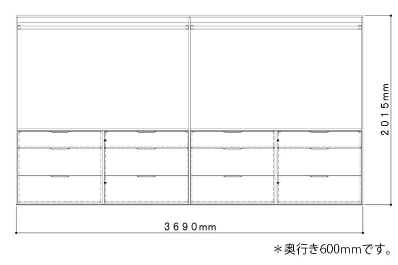 ※引き出しを並べる場合は、1820mmまでの対応となります。
