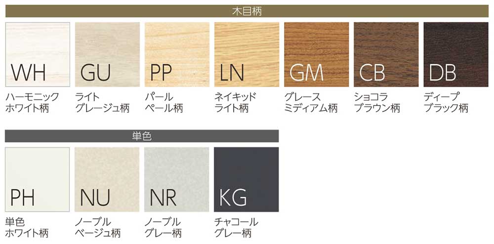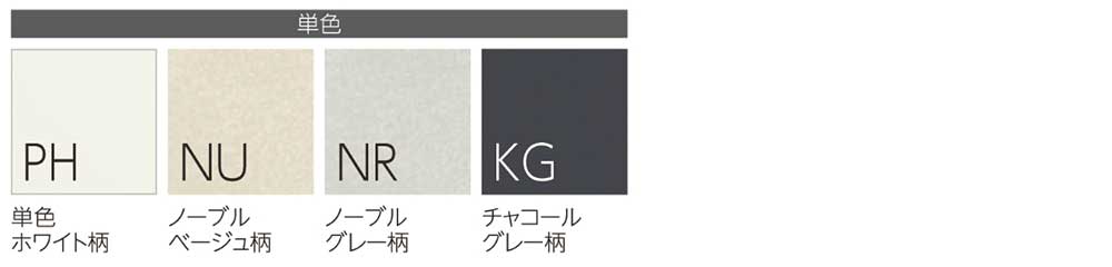 ノーブルベージュ柄〈NU〉、ノーブルグレー柄〈NR〉、チャコールグレー柄〈KG〉を新たにラインナップ。より空間に調和するカラーラインナップで、インテリアとの親和性を高めます。