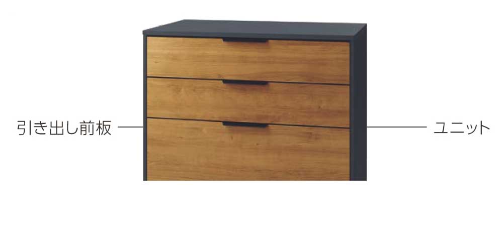 引き出し前板はユニットカラーと同色、もしくは木目柄(スキスムSカラー)からお選びいただけます。