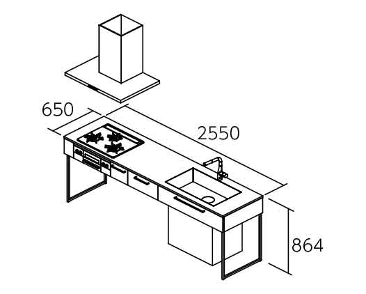 多様な住空間に適応するフレームデザインキッチン