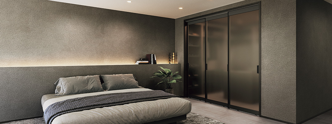 鏡面調仕上げやアルミフレームの素材、ソリッドなデザインで存在感のある空間を演出するシリーズ。