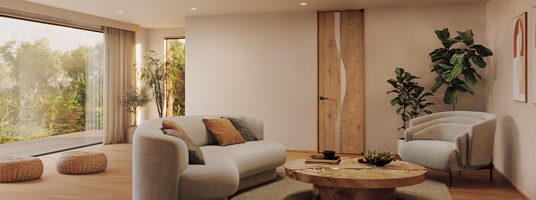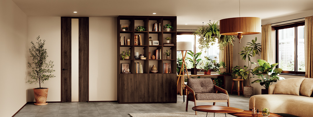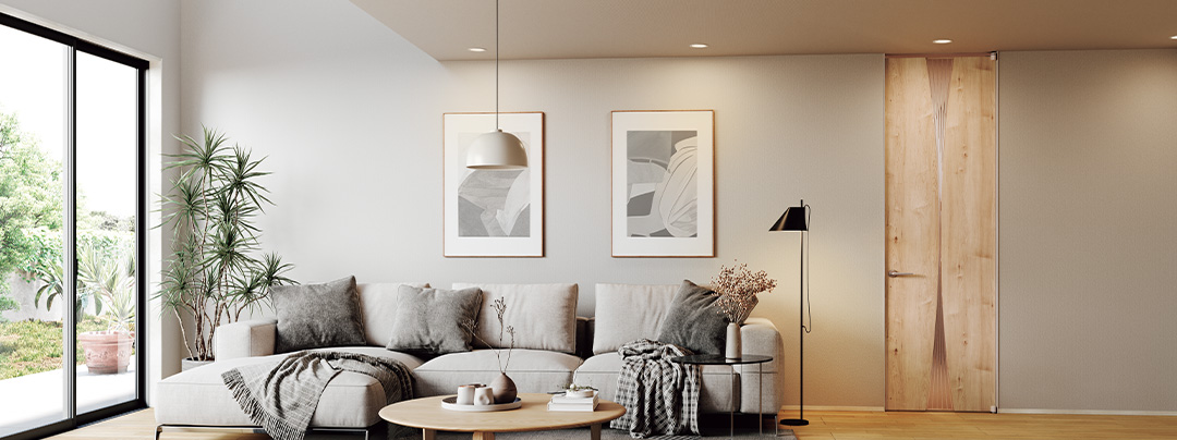 ドアの高さを天井いっぱいまで伸ばすことにより、明るく開放的で空間をより広く見せる効果があります。