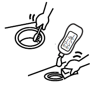 水を少し含ませたスポンジにクリームクレンザーを付け、汚れを落としてください。水で洗い流し、よく拭き取った後、乾拭きをしてください。