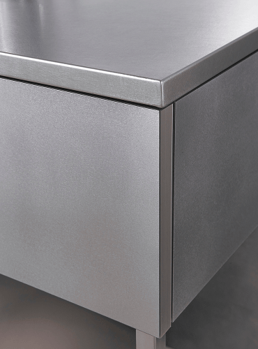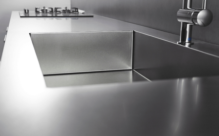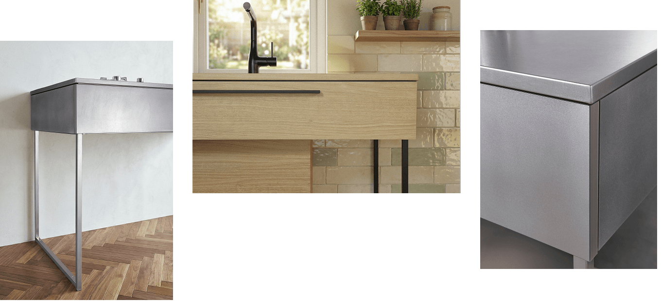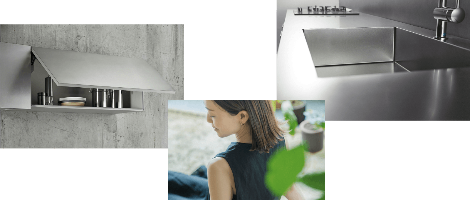 ステンレスの凛とした佇まいに、木や素材の表情を