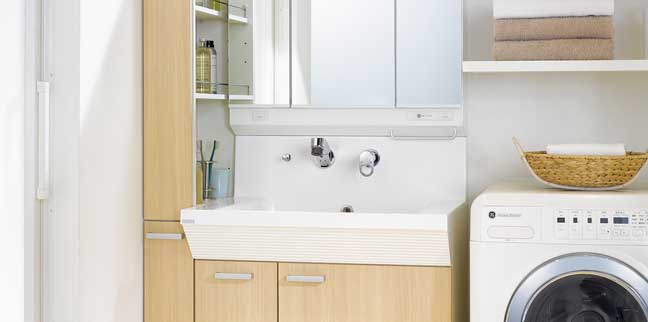 洗面台からはじまる家族みんなが毎日、快適に過ごせる暮らし。そして、みんなが安全に、安心して入浴できるバスルームを目指して。多彩なライフスタイルに対応できる、豊富なバリエーションの中からお好みの洗面台とバスルームをお選びください。